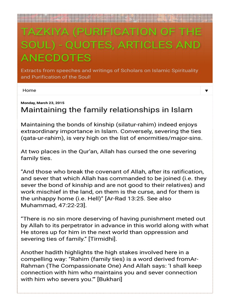 Best islamic quotes about family importance of family ties posted by ahmed abdulla. Just thought id search for some references from the quran and sunnah to help everyone understand the importance of family and how breaking ties will effect us in this world and the here after. Islam places great importance on silat ur rahim keeping family ties and being good to parents as emphasized in many quranic verses.